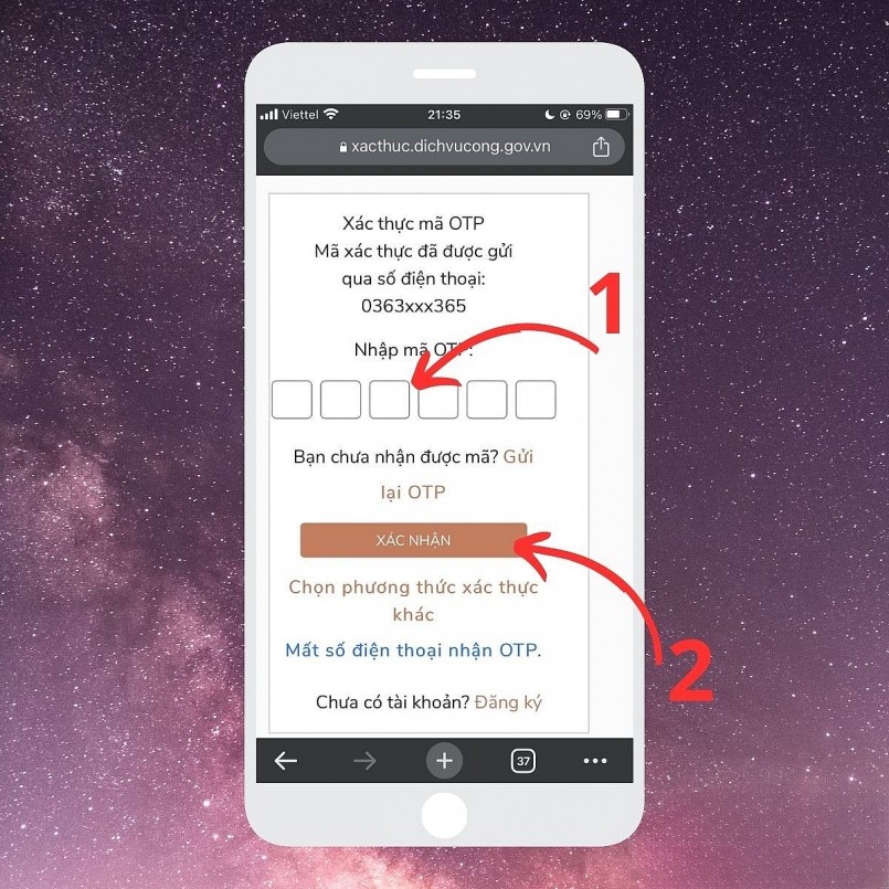 Bước 4: Lúc này, bạn sẽ nhận được 1 mã OTP về điện thoại, bạn tiến hành nhập mã OTP vào ô trống như hình > Xác nhận.