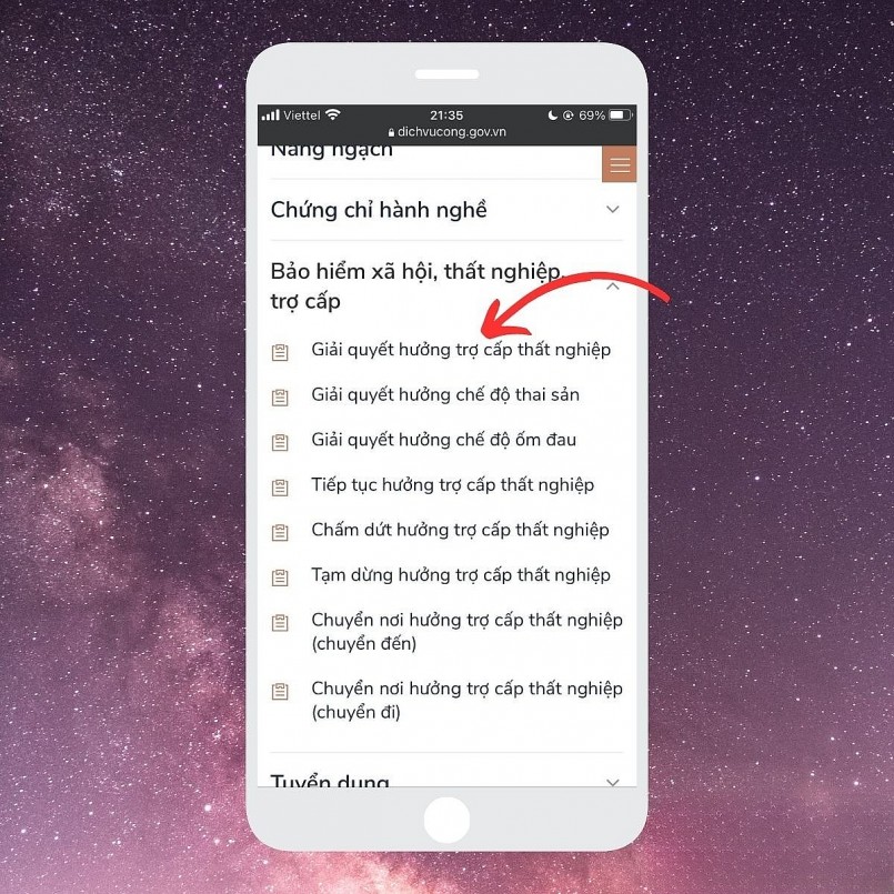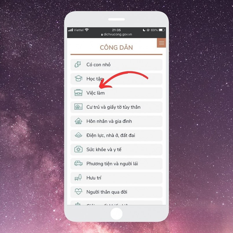 Bước 5: Bạn tiến hành kéo xuống mục Công dân và chọn vào phần Việc làm.