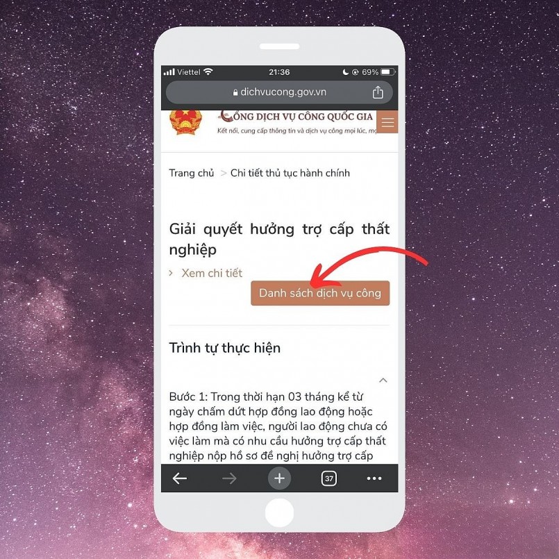 Bước 7: Tại mục Giải quyết hưởng trợ cấp thất nghiệp bạn ấn chọn vào Danh sách dịch vụ công.