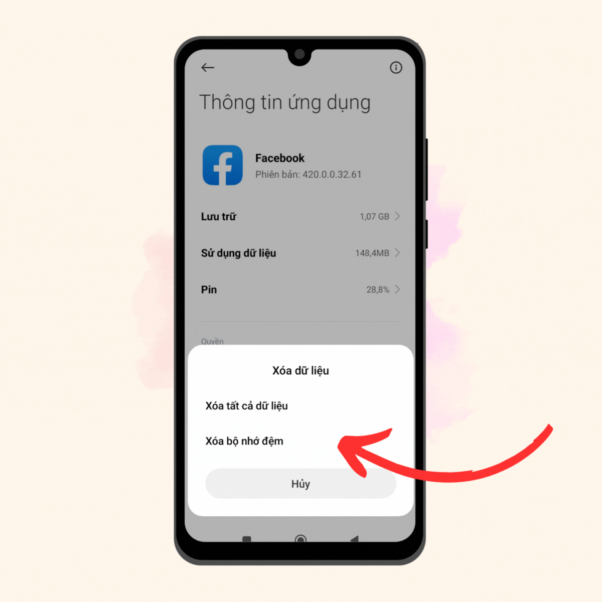 Sau đó, bạn ấn tiếp Xóa tất cả dữ liệu > Click vào Xóa bộ nhớ đệm.