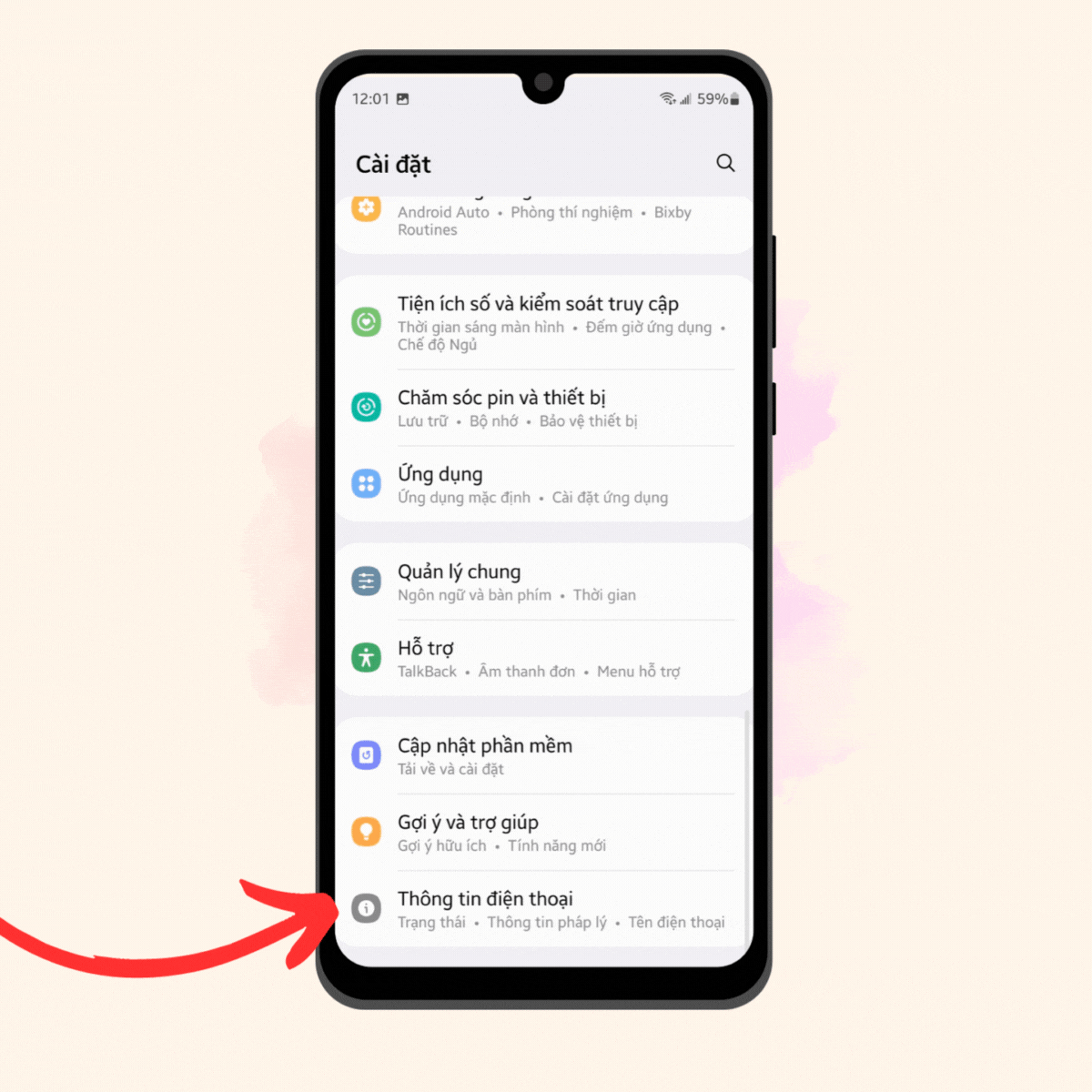 Bước 2: Bấm vào mục Thông tin điện thoại, bấm liên tiếp 7 lần vào dòng "Số phiên bản".