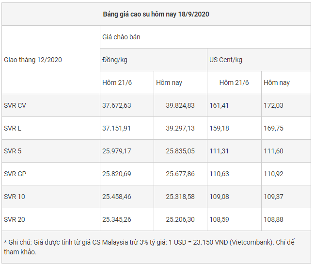 Cập nhật giá cao su chiều nay 18/9: Quay đầu giảm