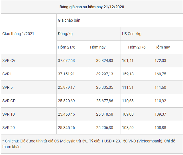 Ghi nhận vào lúc 13h30 chiều ngày 21/12 (theo giờ Việt Nam), giá cao su thế giới giao dịch ảm đạm khi tình hình COVID-19 đã căng thẳng trở lại. Trong khi đó thời tiết tại Thái Lan, Malaysia hay Ấn Độ đang có ảnh hưởng xấu đến chất lượng mủ và công tác thu hoạch.