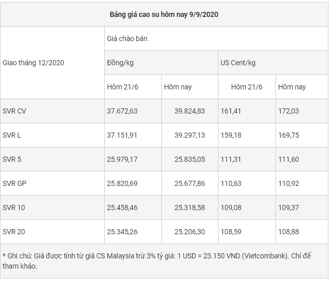 Cập nhật giá cao su chiều nay 9/9: Quay đầu giảm đồng loạt