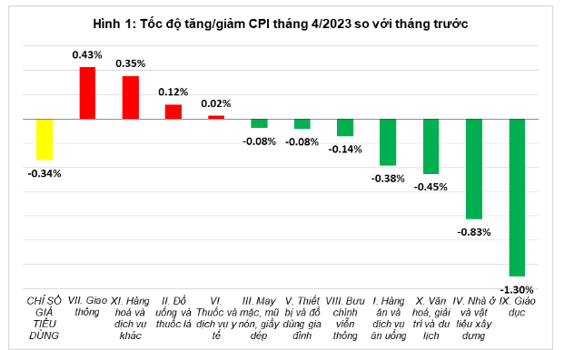 Chỉ số giá tiêu dùng (CPI) tháng 4/2023 giảm 0,34%