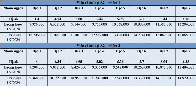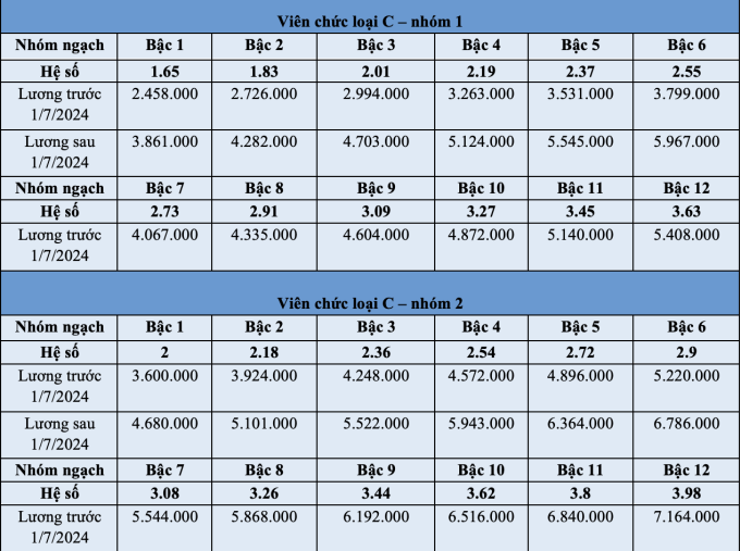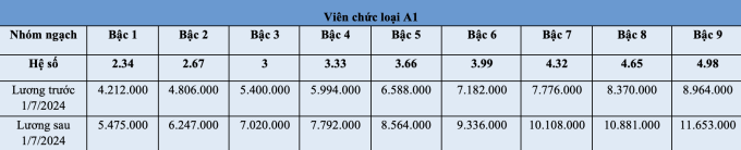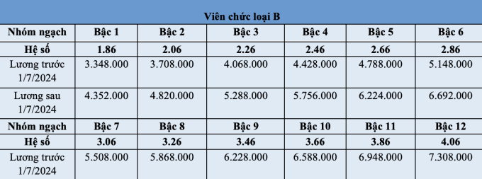 Bảng lương của viên chức trước và sau 1/7 như sau: