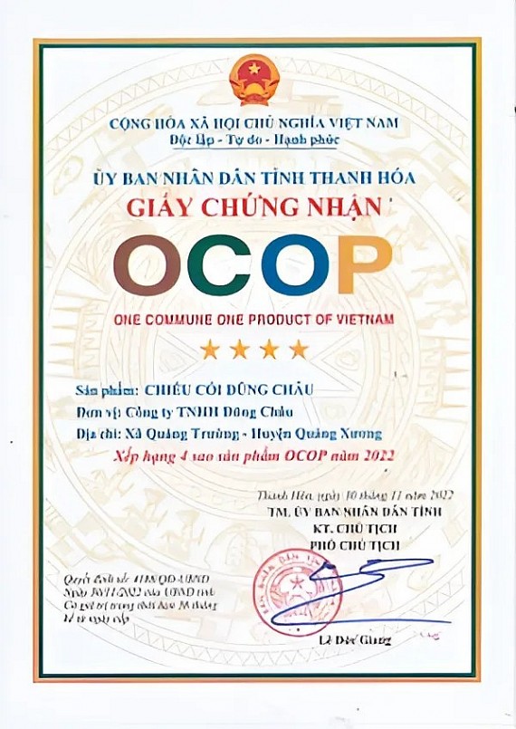 Chiếu cói Dũng Châu được công nhận là sản phẩm OCOP 4 sao vào 30/11/2022.