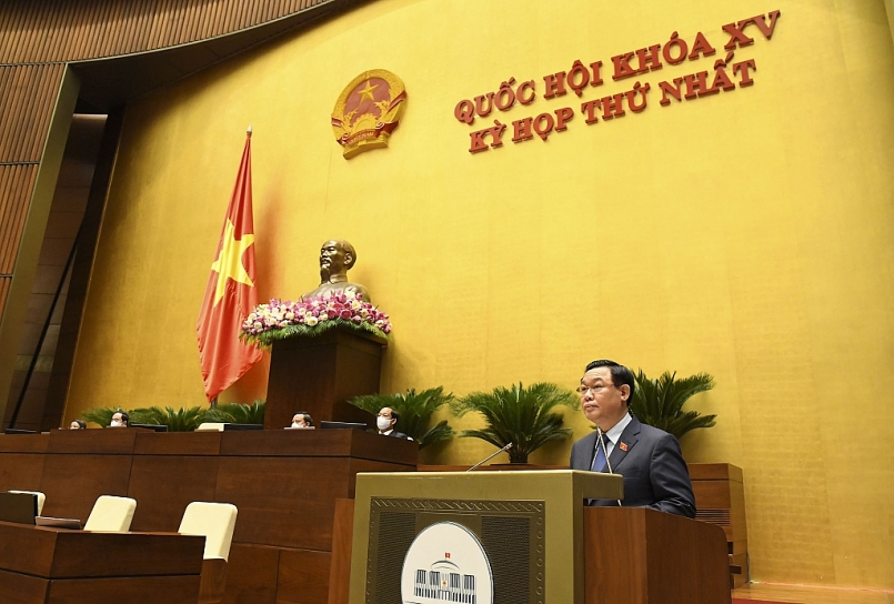 Phát biểu bế mạc kỳ họp, Chủ tịch Quốc hội Vương Đình Huệ cho biết, Kỳ họp thứ nhất, Quốc hội khóa XV là kỳ họp có nhiều nội dung rất quan trọng, diễn ra trong hoàn cảnh đại dịch Covid-19 diễn biến rất phức tạp, bùng phát mạnh tại Thành phố Hồ Chí Minh và một số tỉnh phía Nam và có nguy cơ lan rộng.