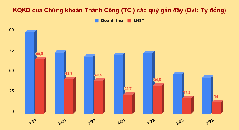 Trong kỳ, doanh thu mảng môi giới chứng khoán giảm mạnh 59% YoY về còn 5,3 tỷ; thu từ bảo lãnh, phát hành chứng khoán giảm 30% còn 8,5 tỷ; mảng tự doanh chứng khoán của TCI thậm chí giảm tới gần 64% so với quý III/2021 còn 8,8 tỷ đồng.