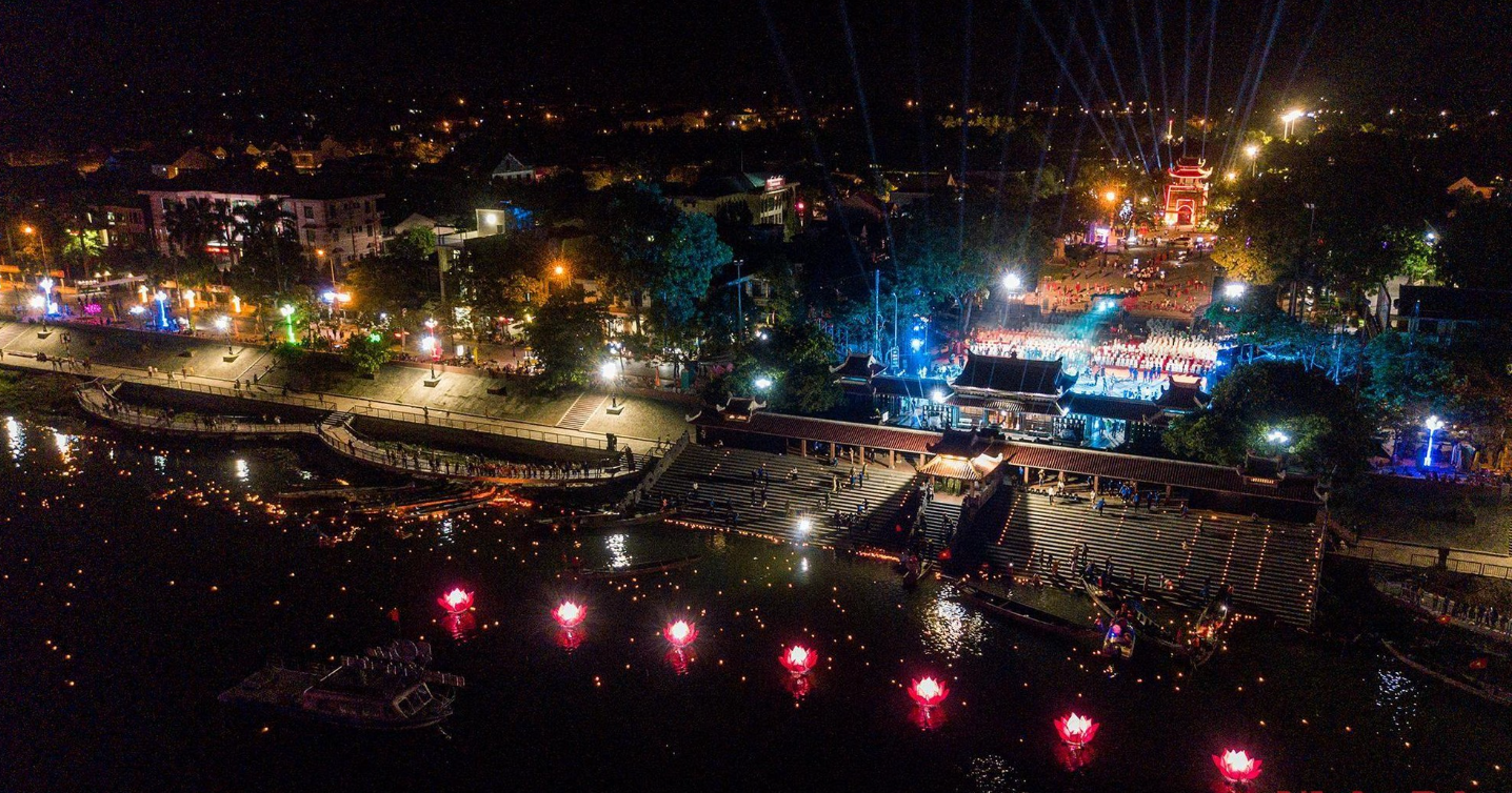 | Sông Thạch Hãn đẹp lung linh trong đêm "Khát vọng hòa bình". |