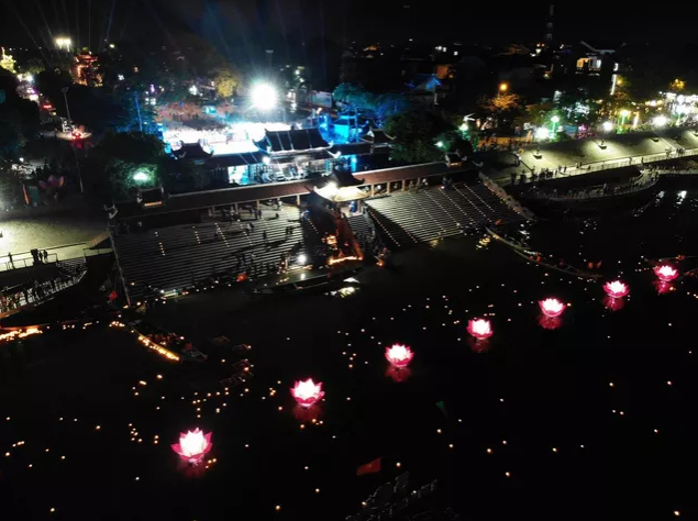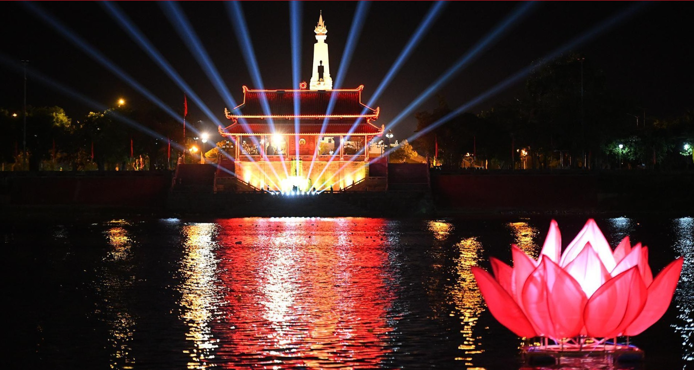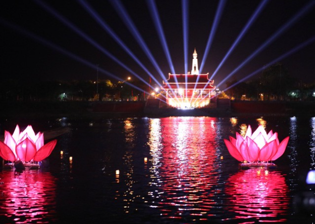 | Hàng nghìn bông hoa đăng rực sáng cả vùng "đất thiêng" Thành cổ Quảng Trị. |