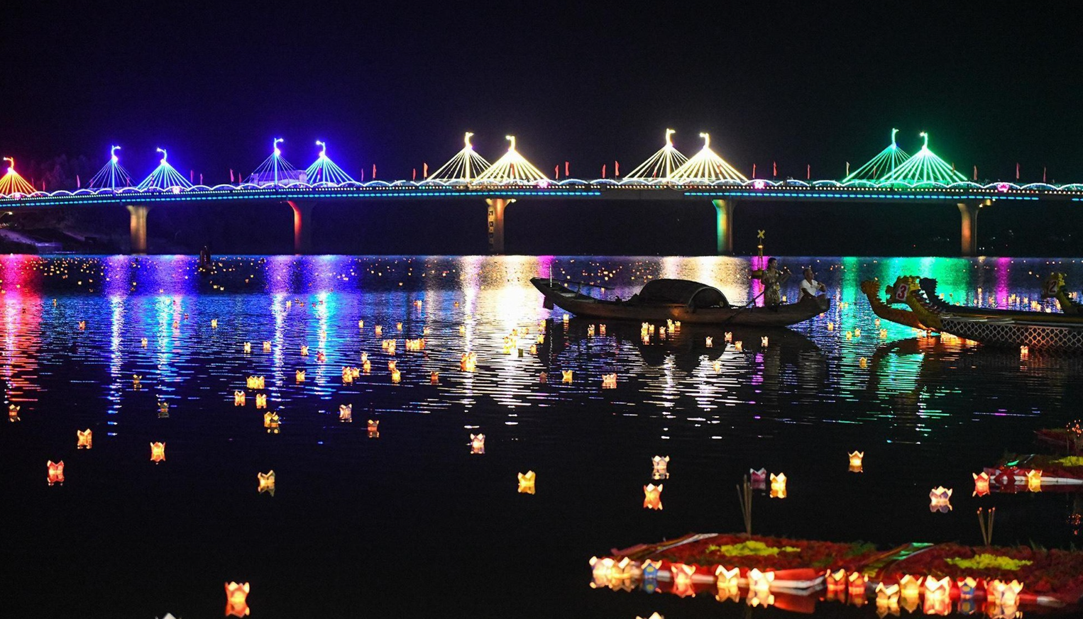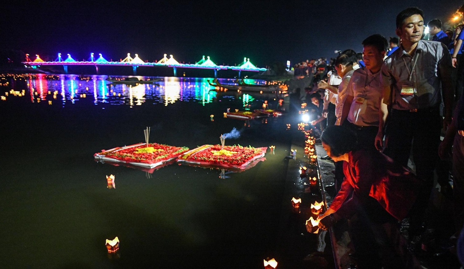 | Hoa đăng được thả trên sông Thạch Hãn tri ân các anh hùng, liệt sĩ. |