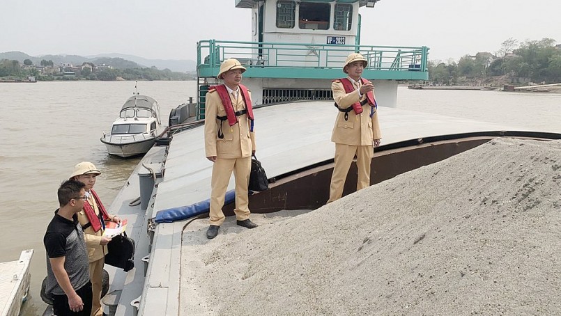 Qua kiểm tra cho thấy phương tiện đang vận chuyển cát từ tỉnh Vĩnh Phúc đi Bắc Giang, không xuất trình được hóa đơn chứng minh nguồn gốc xuất xứ, thuyền trưởng không xuất trình chứng chỉ chuyên môn phù hợp.