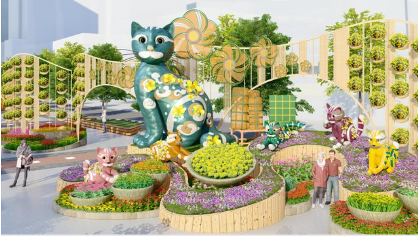 Không dừng lại ở đó, gần đây, phối cảnh linh vật mèo và hình ảnh đường hoa Nguyễn Huệ Tết Quý Mão 2023 ở TP. HCM cũng vừa được hé lộ.