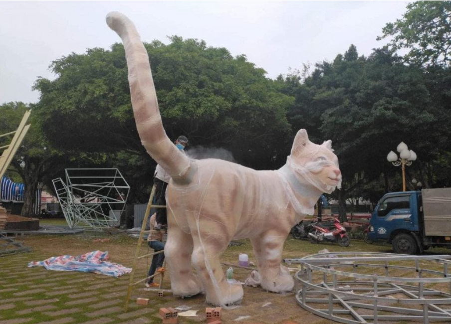 Những bức tượng này được cộng đồng mạng (CĐM) cùng người dân đánh giá khá đẹp, mèo có hai màu trắng vàng chủ đạo. tuy nhiên khi nhìn gần, nhiều người nhận xét là giống hổ hơn giống mèo...
