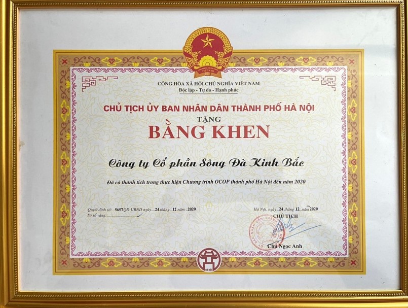 Công ty vinh dự được nhận bằng khen của UBND Thành phố Hà Nội về thực hiện Chương trình OCOP của TP. Hà Nội đến năm 2020. |