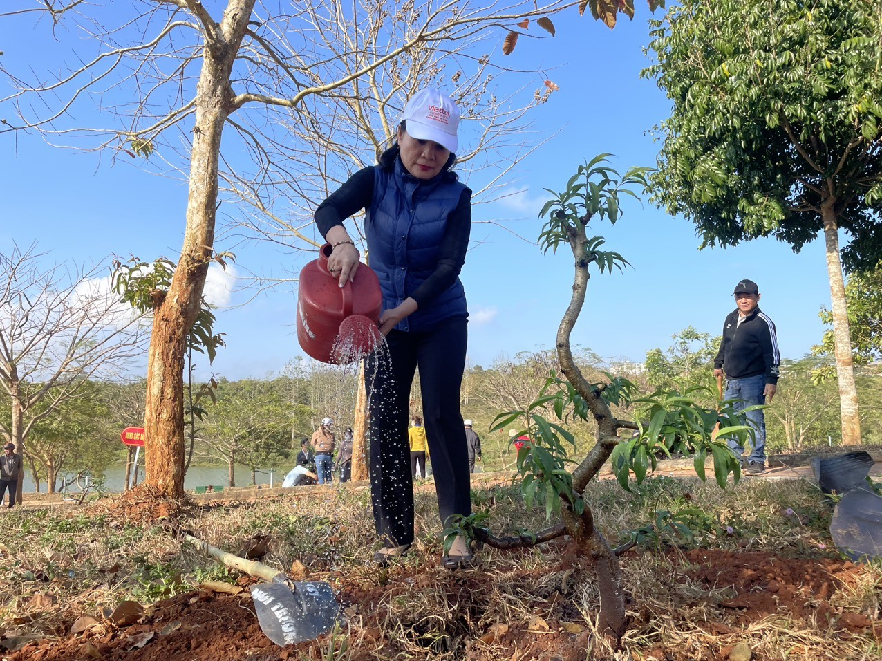 | Bí thư thị xã Buôn Hồ trồng cây tại buổi lễ phát động. |