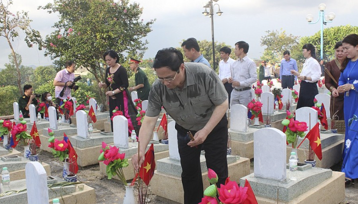 | Thủ tướng Phạm Minh Chính và đoàn đại biểu tri ân các anh hùng liệt sỹ đã ngã xuống vì bình yên Tổ quốc, vì nghĩa vụ quốc tế cao cả |