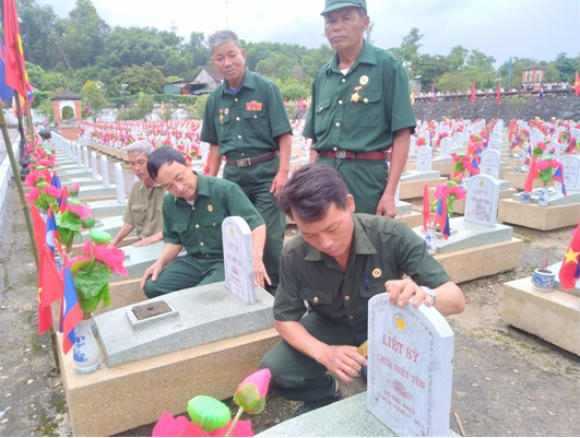 | Trước phần mộ các liệt sĩ, mọi người cùng thành kính thắp những nén tâm nhang tri ân tưởng nhớ các anh hùng liệt sĩ |