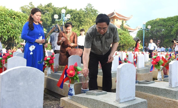 Nhân kỷ niệm 75 năm Ngày Thương binh - Liệt sĩ (27/7/1947 – 27/7/2022), Ngày 23/7, tại Nghĩa trang Quốc tế Việt – Lào, Thủ tướng Chính phủ Phạm Minh Chính và đoàn công tác đã đến dâng hương tưởng niệm các Anh hùng Liệt sỹ.