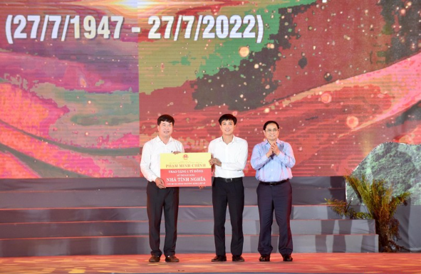 Trong chương trình, Thủ tướng Phạm Minh Chính đã trao kinh phí hỗ trợ xây dựng nhà tình nghĩa tặng 20 gia đình chính sách, Bộ Văn hóa, Thể thao và Du lịch trao 75 phần quà tặng các gia đình chính sách trên địa bàn huyện Anh Sơn.