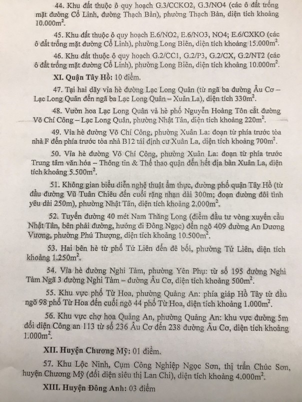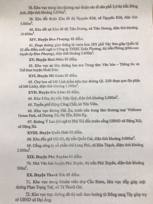 Quận Tây Hồ (10 điểm); Quận Chương Mỹ (1 điểm); Huyện Đông Anh (3 điểm)