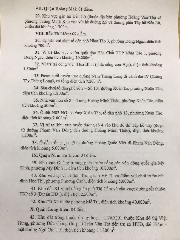 Quận Hoàng Mai (1 điểm); Quận Bắc Từ Liêm (9 điểm); Quận Nam Từ Liêm (4 điểm); Quận Long Biên (4 điểm)