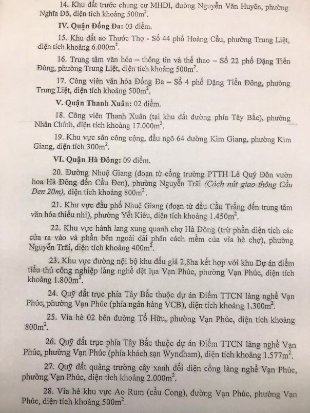 Quận Đống Đa (3 điểm); Quận Thanh Xuân (2 điểm); Quận Hà Đông (9 điểm)