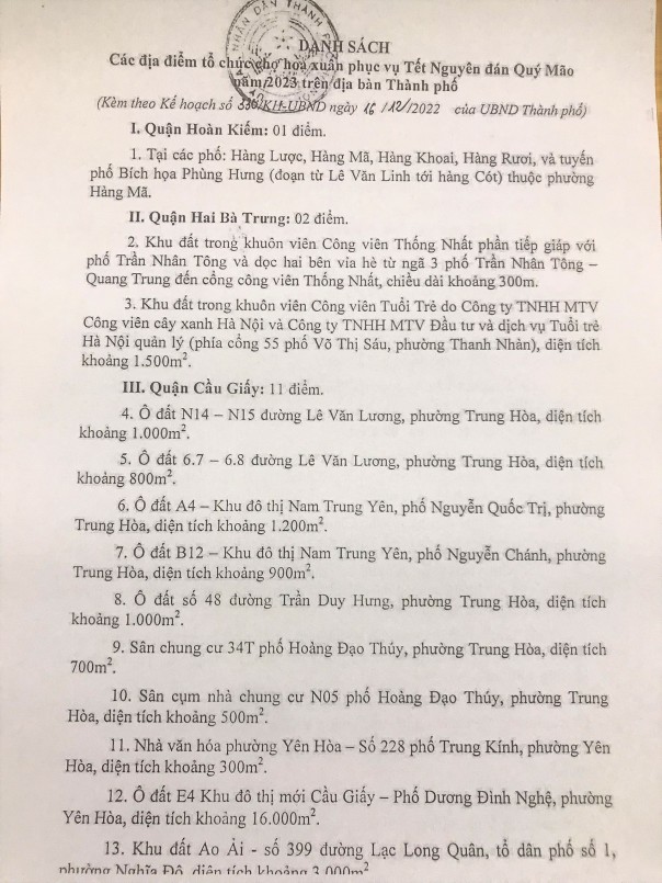 | 91 điểm chợ hoa xuân phục vụ Tết Nguyên đán Quý Mão 2023 trên địa bàn thành phố Hà Nội. |