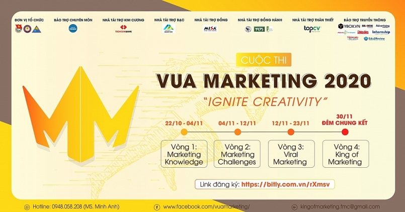 Cuộc thi "Vua Marketing 2020" hứa hẹn sẽ mang lại cho các bạn sinh viên cơ hội được thể hiện các ý tưởng sáng tạo, ứng dụng thực tế tại ngân hàng, doanh nghiệp lớn và uy tín.