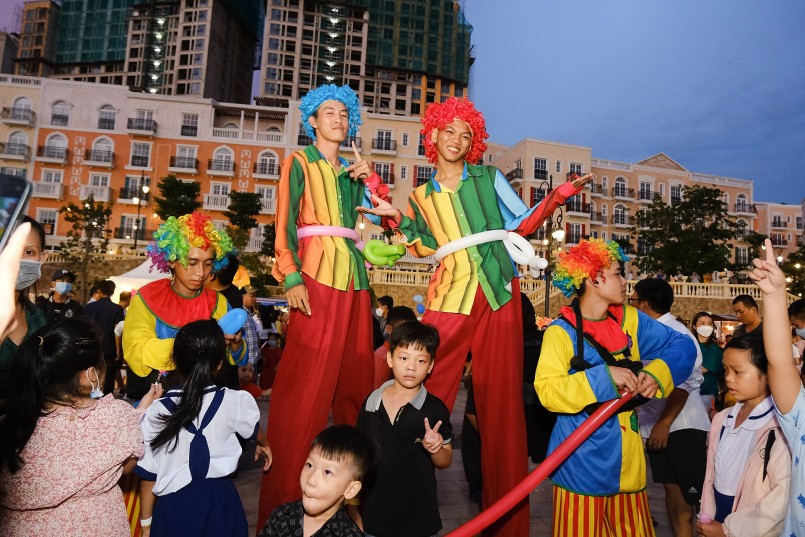 Hoạt náo trong sự kiện là những linh vật chuột Mickey, thỏ đáng yêu, các chú hề đi cà kheo… không chỉ cùng chụp ảnh, mà còn dành tặng cho các bạn nhỏ những quả bóng bay tạo hình. Bên cạnh đó, dịp này tập đoàn Sun Property cùng các nhà tài trợ chuẩn bị 4.000 phần quà cho các em nhỏ dưới 12 tuổi, ở khắp các điểm quà trong Quảng trường. Các món quà nhỏ như đèn lồng, bánh kẹo, tranh vẽ… nhưng lại mang đến niềm vui to lớn cho những em nhỏ.