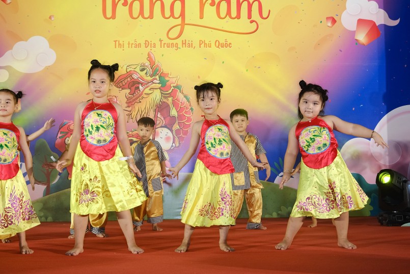 Trên sân khấu, các bạn nhỏ ở trường mầm non địa phương mang đến các tiết mục truyền thống hết sức đáng yêu như Chú Cuội chơi trăng, Chiếc đèn ông sao… Không khí đêm hội càng sôi động hơn với các tiết mục biểu diễn ảo thuật, múa lân… khiến các bạn nhỏ hết ngạc nhiên đến hào hứng. Đặc biệt “Đêm hội trăng rằm” còn có sự góp mặt của bé Minh Khang - Á quân Bước nhảy Hoàn vũ nhí, với những tiết mục trình diễn đặc sắc.