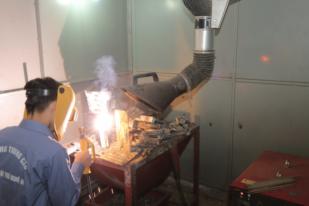 Về đào tạo: 100% giáo viên của trường đạt chuẩn và trên chuẩn, được tạo điều kiện học nâng cao trình độ chuyên môn, nghiệp vụ nên đáp ứng được yêu cầu nhiệm vụ. Tổ chức dạy đúng chương trình, định kỳ rà soát, điều chỉnh chương trình đào tạo theo phản hồi của doanh nghiệp, phù hợp yêu cầu thực tế; mua sắm trang thiết bị hiện đại theo quy định danh mục thiết bị của Bộ LĐTBXH. Hàng năm nhà trường cử giáo viên đến các doanh nghiệp để nắm bắt khoa học kỹ thuật, tìm hiểu quy trình làm việc từ đó điều chỉnh cách dạy và cách học tại trường. Đồng thời, qua đó tham mưu cho lãnh đạo nhà trường trong việc mua sắm trang thiết bị đào tạo phù hợp. Học sinh được thực hành nhiều, nguyên vật liệu đảm bảo giúp rèn luyện kỹ năng, tay nghề vững vàng. Để giúp học sinh tăng khả năng làm việc, nhà trường còn chú trọng thực hành với công việc thực tế của một người thợ, làm ra các sản phẩm thực. Sau khi học sinh hoàn thành hai phần ba kỹ năng trong chương trình đào tạo, nhà trường tổ chức đưa học sinh đi thực tập 2 đến 4 tháng tại doanh nghiệp để làm quen với môi trường làm việc công nghiệp.