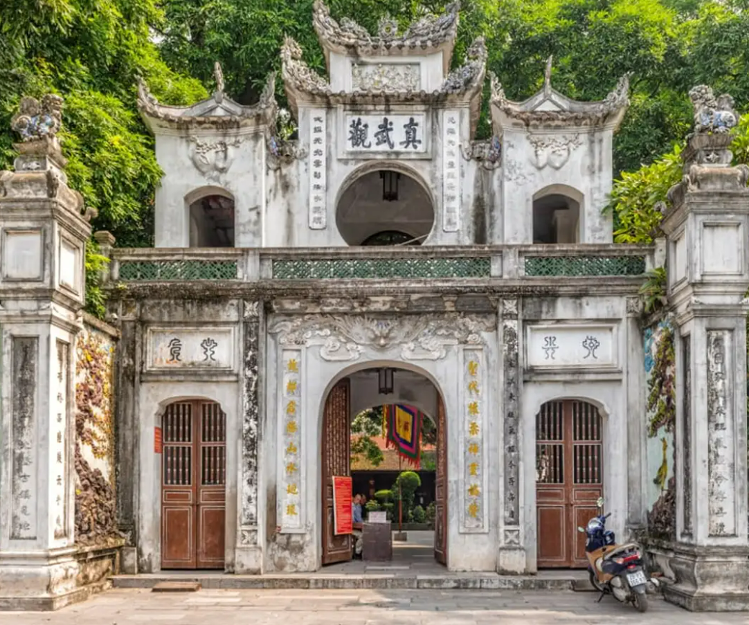 Ngoài bức tượng đồng thờ thần Huyền Trân Trấn Vũ là một công trình nghệ thuật độc đáo, nơi đây còn có quả chuông đồng trên gác tam quan với tiếng ngân đã đi vào lòng người dân Việt Nam: “Tiếng chuông Trấn Vũ, canh gà Thọ Xương”.