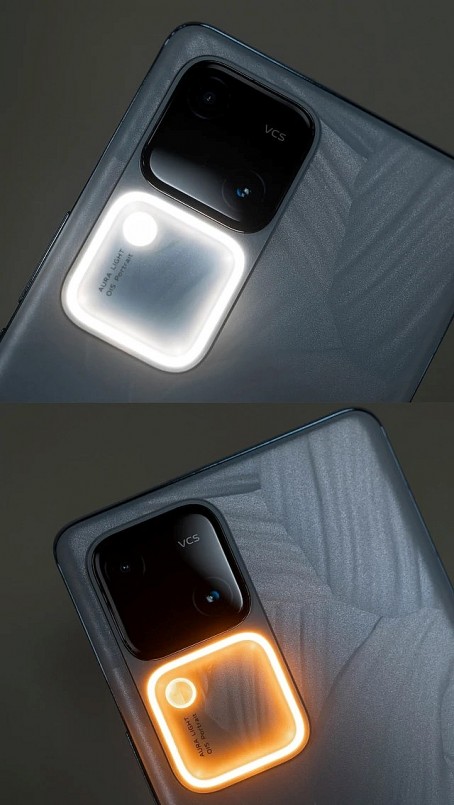 Mặt lưng Vivo S18 có cụm camera hình chữ nhật, nửa trên chứa thiết lập máy ảnh trong khi nửa dưới lại chứa đèn flash và đèn LED Aura mang tính biểu tượng. Cảm biến chính OmniVision OV50E 50MP f/1.9 hỗ trợ chống rung quang học OIS và quay phim 4K@30fps. Kết hợp cùng camera góc siêu rộng OmniVision OV08D10 8MP f/2.2.