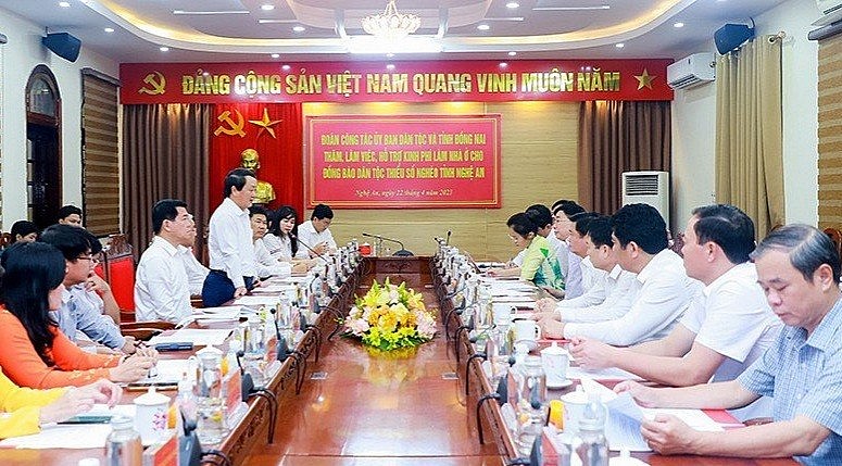 Ngày 22/4, tại TP. Vinh, tỉnh Nghệ An, đoàn công tác của Ủy ban Dân tộc Chính phủ và tỉnh Đồng Nai đã làm việc với lãnh đạo tỉnh Nghệ An, trao 3 tỷ đồng hỗ trợ làm nhà cho đồng bào dân tộc thiểu số nghèo và 1 tỷ đồng khắc phục hậu quả thiên tai, bão lũ.