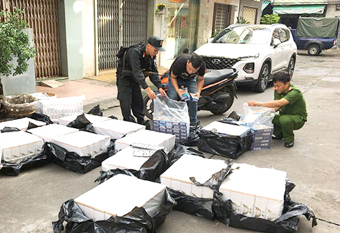 | Lực lượng công an bắt giữ số thuốc lá lậu. |