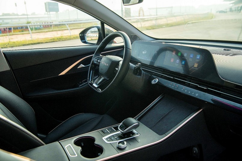 Nội thất được trang bị hệ thống đèn 64 màu và màn hình kép 10,25 inch, cần số pha lê, ghế thể thao hai màu, tất cả tạo nên một không gian lái đầy tiện nghi và công nghệ.