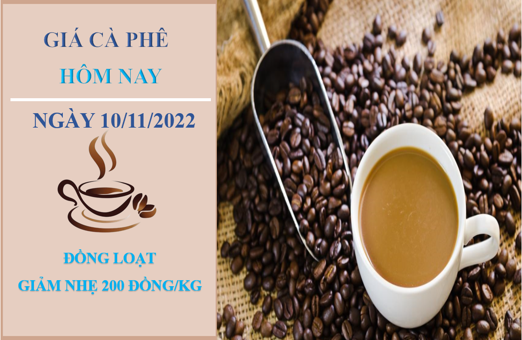 Giá cà phê hôm nay 10/11/2022 thị trường trong nước giảm trung bình 200 đồng/kg tại các địa phương so với cùng thời điểm sáng hôm qua. Hiện giá cà phê dao động trong khoảng từ 39.700 - 40.300 đồng/kg.