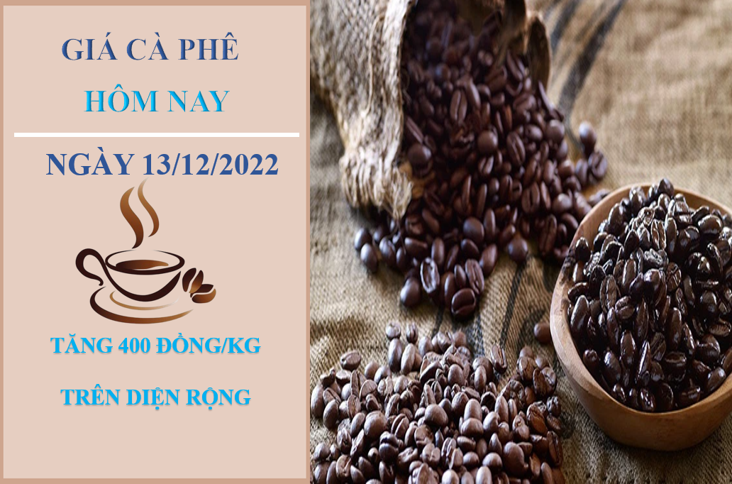 Giá cà phê hôm nay 13/12/2022, thị trường trong nước điều chỉnh tăng 400 đồng/kg tại các địa phương so với cùng thời điểm sáng hôm qua. Hiện giá cà phê đang dao động trong khoảng 40.400 - 40.800 đồng/kg.