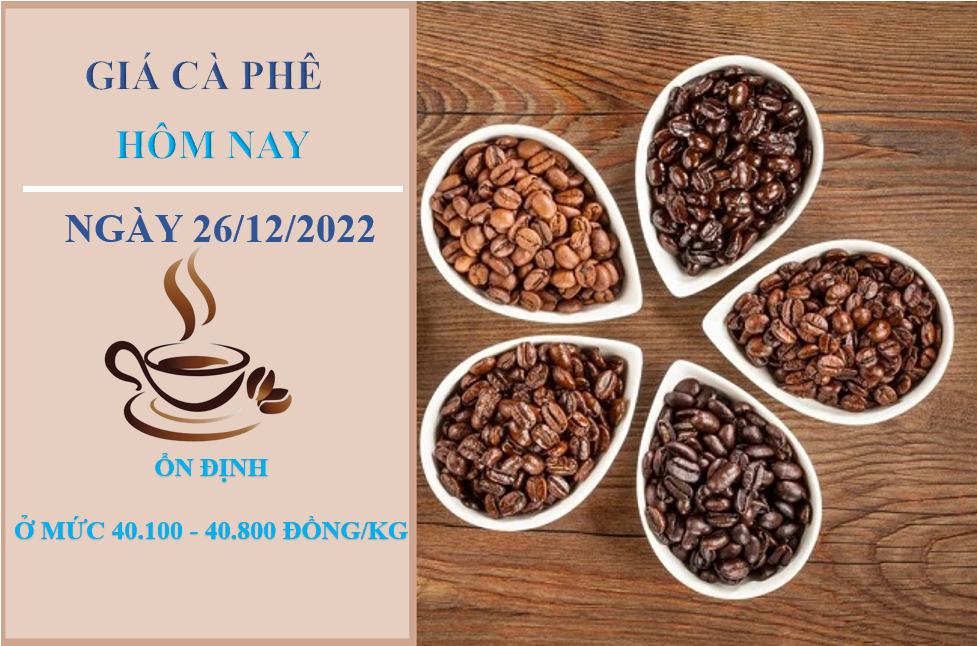 Giá cà phê hôm nay 26/12/2022, thị trường trong nước không ghi nhận thay đổi mới tại các địa phương so với cùng thời điểm hôm qua. Hiện giá cà phê đang dao động trong khoảng 40.100 - 40.800 đồng/kg.