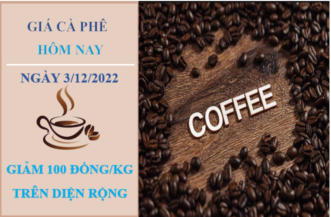Giá cà phê hôm nay 3/12/2022, ghi nhận thị trường trong nước giảm 100 đồng/kg tại các địa phương so với cùng thời điểm sáng hôm qua. Hiện giá cà phê đang dao động trong khoảng 40.500 - 41.100 đồng/kg.