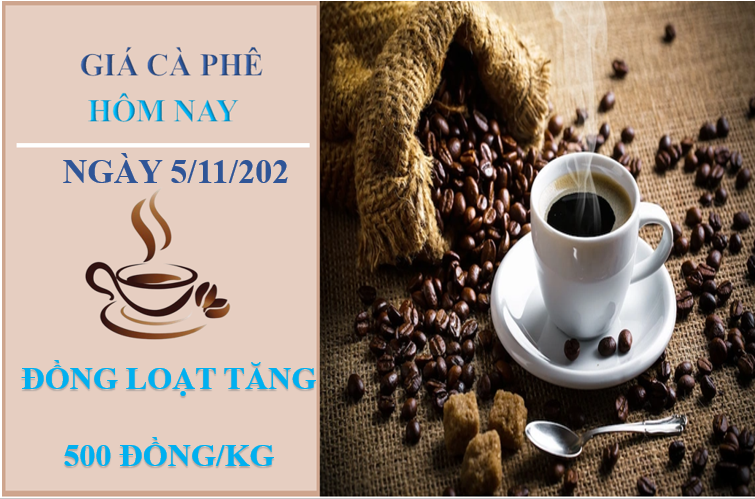 Giá cà phê hôm nay 5/11/2022, ghi nhận thị trường cà phê trong nước tăng 500 đồng/kg tại các địa phương so với hôm qua. Hiện giá cà phê dao động trong khoảng 40.700 - 41.300 đồng/kg.