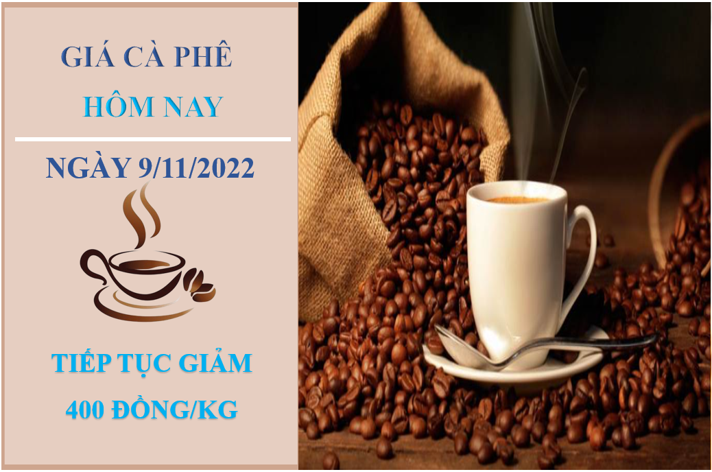Giá cà phê hôm nay 9/11/2022, ghi nhận thị trường trong nước giảm trung bình 400 đồng/kg tại các địa phương so với cùng thời điểm sáng hôm qua. Hiện giá cà phê dao động trong khoảng 39.900 - 40.500 đồng/kg.