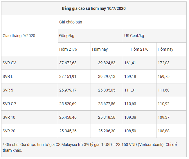 Trong khi đó giá cao su Nhật Bản kỳ hạn tháng 10/2020 hiện ở mức 152,4 JPY/kg, giao dịch cao nhất đạt 154,6 JPY/kg, thấp hơn giá hôm qua 1,3 JYP/kg.