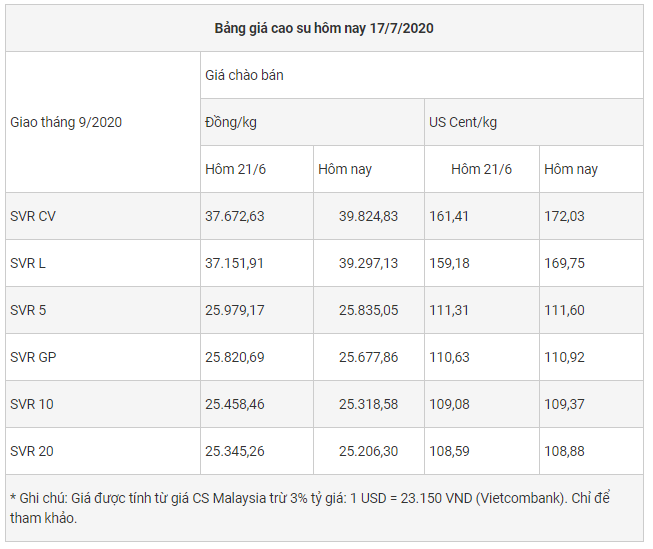 TH&SP Giá cao su lúc 14h15 chiều nay (theo giờ Việt Nam), giá cao su tiếp tục ảm đạm, căng thẳng Mỹ - Trung đang gia tăng và mối lo ngại về tác động kinh tế bởi làn sóng COVID-19 thứ 2 tại Mỹ cũng gây áp lực thị trường và tâm lý của nhà đầu tư.