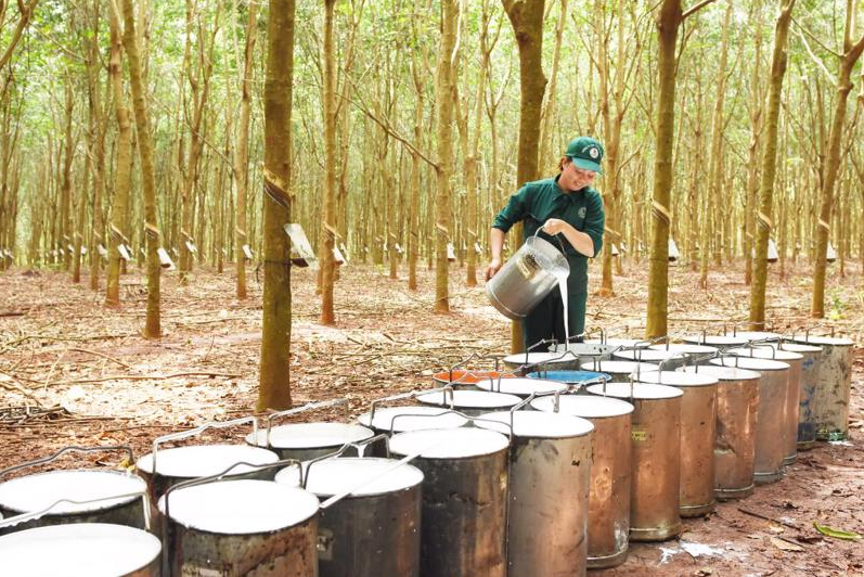 Tại Bình Phước, giá mủ cao su nguyên liệu được Công ty cao su Phú Riềng thu mua ở mức từ 300-323 đồng/ TCS, giảm từ 5-22 đồng/TCS so với cuối tháng 5/2022.