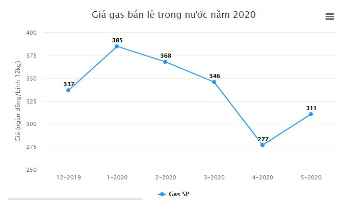 Riêng ở thị trường trong nước, từ ngày 1/5/2020, giá bán gas SP tăng 2.833 đồng/kg (đã VAT), tương đương 34.000 đồng/bình 12kg. Với mức giảm này, giá gas SP bán lẻ tối đa đến tay người tiêu dùng trong tháng 5/2020 chỉ còn tối đa 311.000 đồng/bình 12kg.
