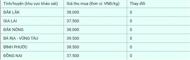 Cụ thể, giá tiêu tại Đắk Nông (Gia Nghĩa) và Đắk Lắk (Ea H'leo) ở mức 38.000 đồng/kg.