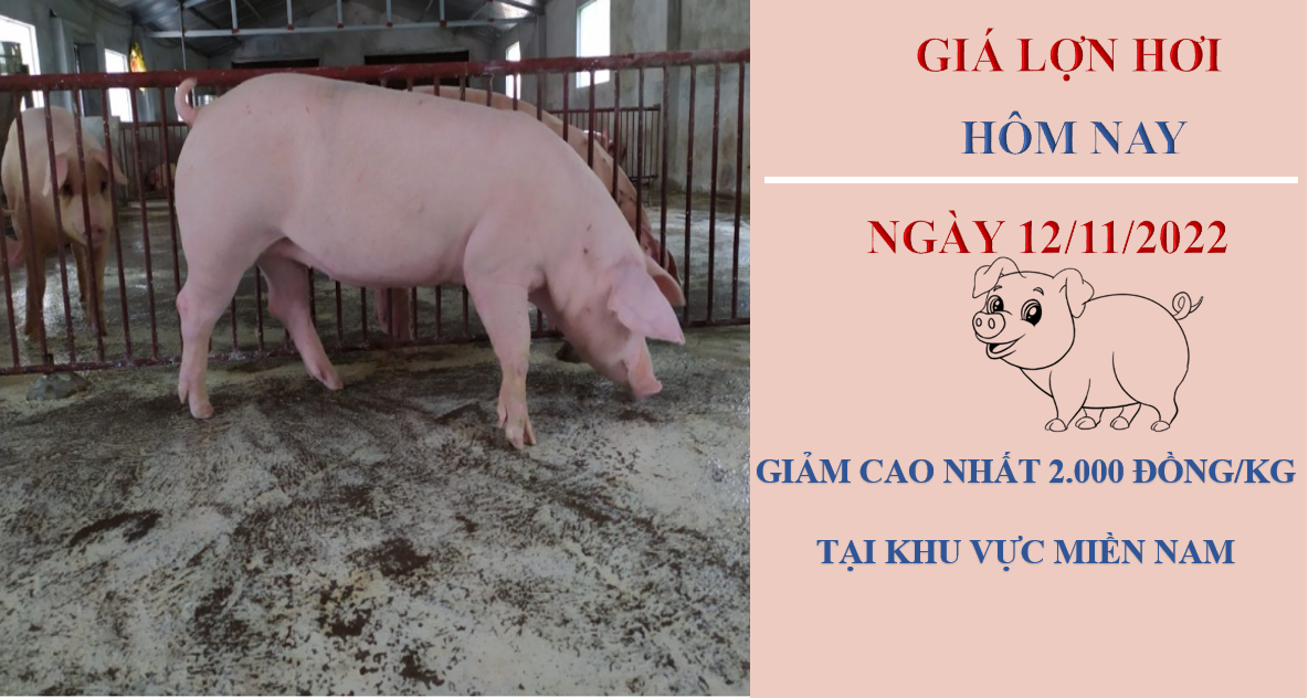 Giá heo hơi hôm nay 12/11/2022, ghi nhận điều chỉnh giảm 1.000 - 2.000 đồng/kg tại các địa phương trong khu vực miền Bắc và Miền Nam. Hiện tại, giá khảo sát ở các tỉnh thành dao động trong khoảng 51.000 - 58.000 đồng/kg.